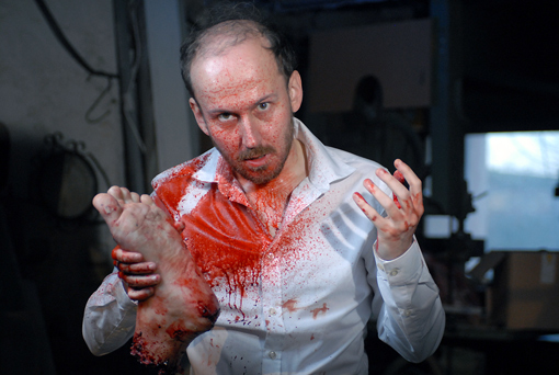 Nouredine a été au top. C'est un ami que j'adore, et il a vraiment donné de son temps et de sa personne. Et je suis hyper content d'avoir rencontré quelqu'un d'aussi pro et efficace que Delphine, qui nous a réalisé des effets de fou. Le pied en latex, les giclées de sang que je me prends, les maquillages (jusqu'à la fausse sueur) : c'est elle !!